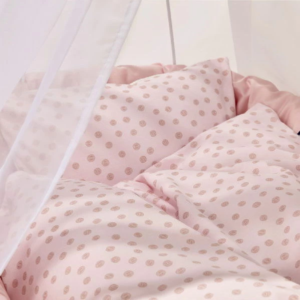 - Stubenwagenset Curly Dots (Himmel, Bettwäsche 80×80 cm, Stubenwagenausschlag), waschbar bis 60°C, 100% Bio-Baumwolle