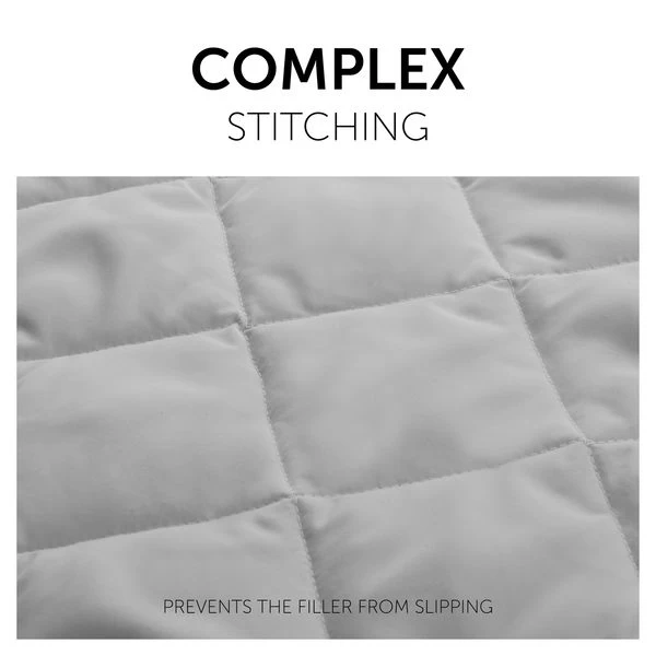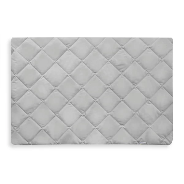 Das Bettlaken besteht aus einem weichen Stoff an der Oberseite und einem Netzstoff an der Unterseite, die beide atmungsaktiv sind und eine temperaturausgleichende Wirkung haben. Diese Eigenschaften helfen, Wärmestau zu vermeiden. Die Materialien sind auch feuchtigkeitsregulierend, was für ein angenehmes Schlafklima sorgt. Durch die Steppungen bleibt der Füllstoff gleichmäßig verteilt.