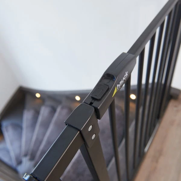 Das Close N Stop Schutzgitter hat einen manuellen Schließmechanismus und rastet zuverlässig im kindersicheren Verschluss ein. Dank Zweifach-Sicherung können nur Erwachsene das Schutzgitter bedienen. Das Close N Stop lässt sich mit nur einer Hand in beide Richtungen öffnen. So ist die andere Hand immer für den kleinen Schatz frei.