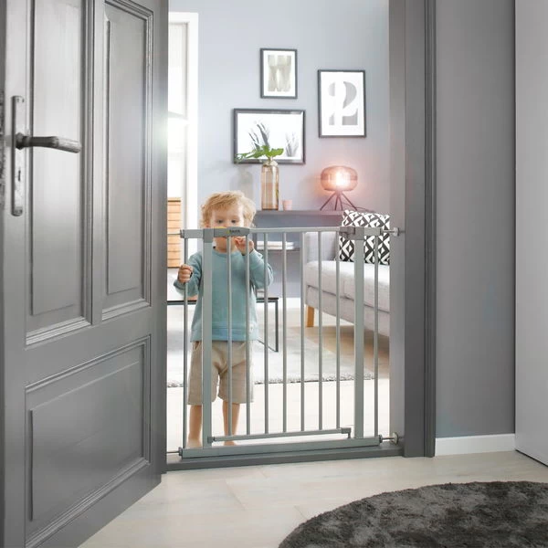 Das Metallgitter lässt sich mittels Stellschrauben sicher zwischen Türrahmen, Wänden oder Treppenaufgängen einspannen. Es muss nicht gebohrt werden. Zum Hindurchgehen können Erwachsene die Tür mit nur einer Hand in beide Richtungen öffnen. Dadurch ist die andere Hand für den kleinen Schatz oder Einkaufstaschen frei. Das Stop N Safe 2 hat einen manuellen Schließmechanismus mit einer Zweifach-Sicherung, wodurch ein unkontrolliertes Öffnen durch Kinder verhindert wird.