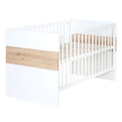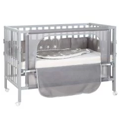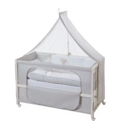 Roba Room Bed Adam & Eule, Weiß Lackiert Babybett Mit Bettwäscheset, Matratze, Himmelstange
