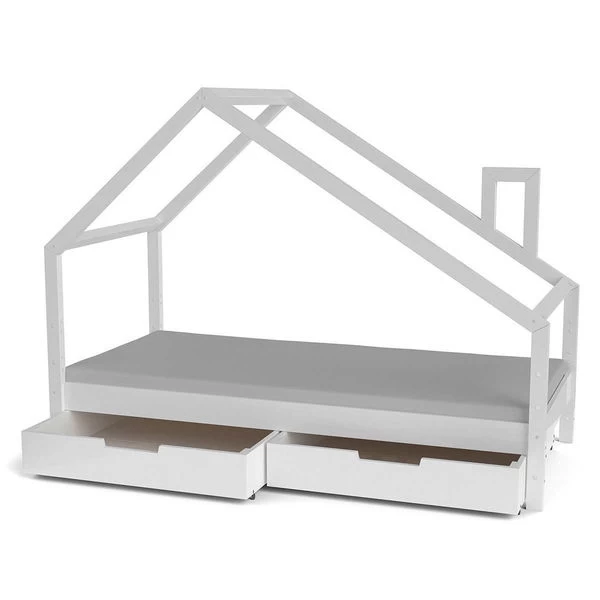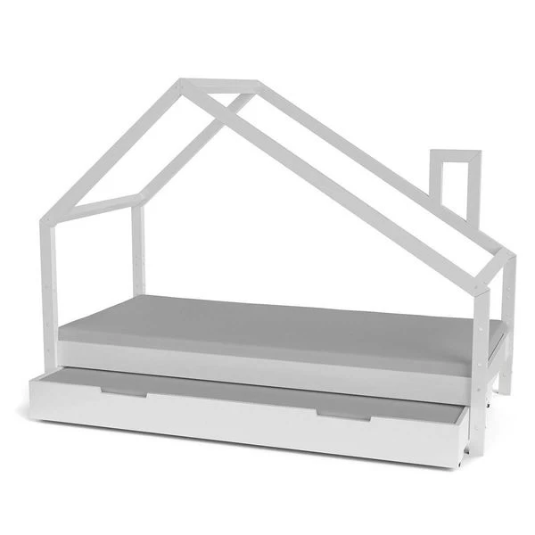 - Hausbett Kiefer weiß lackiert, Liegefläche 90 x 200 cm