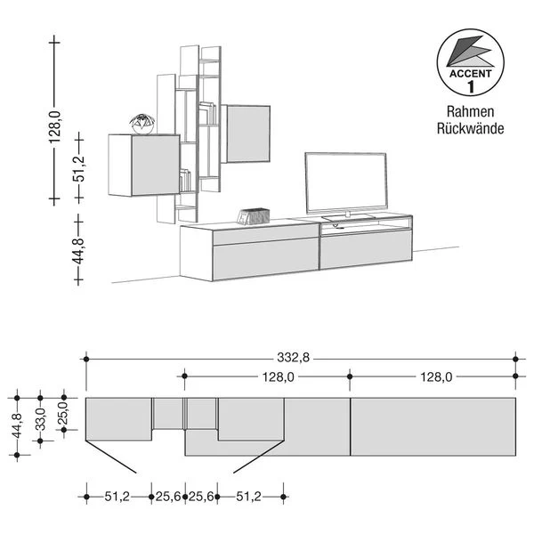 Lieferumfang der now! by hülsta easy Wohnwand:
