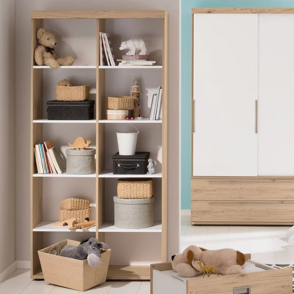 Das Paidi Fionn Regal hat einen schlichten, edlen Look. Der Korpus des Regals ist in Eiche-Bordeaux-Nachbildung gefertigt, die Einlegeböden setzen einen Kontrast in kreideweiß. Damit ist das Regal die ideale Ergänzung zur Kinderzimmer-Serie „Fionn“.
