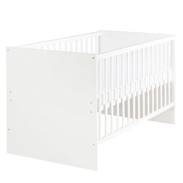 Das roba Kombi-Kinderbett Anton ist in schlichtem Weiß gehalten. Durch das 3-fach höhenverstellbare Lattenrost kann es jederzeit in eine rückenschonende Position verstellt werden. Die Liegefläche beträgt 70 x 140 cm. Für ein leichtes Aus- und Einsteigen können 3 Schlupfsprossen entfernt werden. Zu gegebener Zeit kann das Kinderbett einfach mit den mitgelieferten Umbauseiten in ein Juniorbett verwandeln werden.