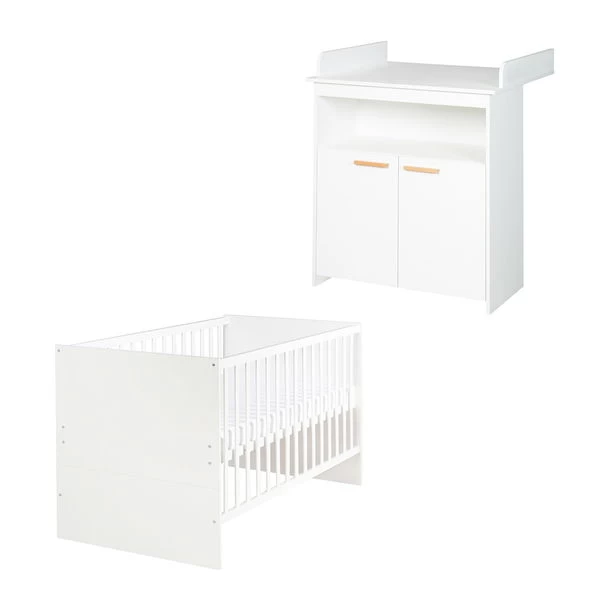 Das roba Anton Kinderzimmer Sparset besitzt einen zeitlosen Stil. Das mitwachsende Kinderbett kann zum Juniorbett umgebaut werden und zum 7. Lebensjahr genutzt werden. Die herausnehmbaren Schlupfsprossen ermöglichen Ihrem Kind ein einfaches und sicheres Ein- und Ausstieg aus dem Kinderbett. Die Wickelkommode besitzt einen abnehmbarem Wickelansatz und hat eine angenehmen Wickelhöhe. Besonders hochwertige Echtholzelemente, insbesondere die formschönen Griffe, setzen stilvolle Akzente.