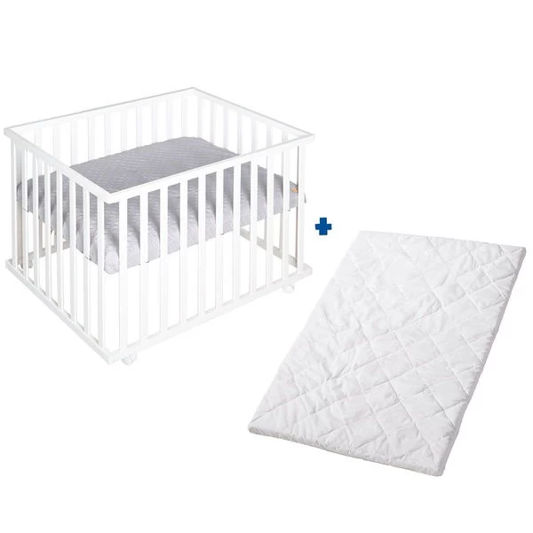 Das Roba Laufgitter ist ein kindgerechtes stabiles Laufgitter mit Flachstäben aus Holz in modernem Dekor. Aufgebaut bietet das Roba Laufgitter eine große Spiel- und Kuschelfläche mit einer liebevoll gestalteten Stoffeinlage für Rundumschutz. Die rückenfreundliche 3-fache Höhenverstellbarkeit lädt Eltern mit Freude zum Spielen mit ihren Babys ein. Rollen sorgen für die nötige Mobilität. Ein roba Laufgitter als wunderschöner, sicherer Spielplatz, der lange Verwendbarkeit garantiert und in dem Kinder gerne die Welt entdecken.