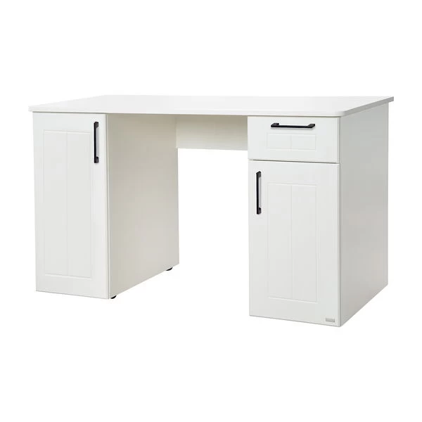 Die roba Sylt Schreibtisch verfügt über 2 Türen und eine Schublade alle mit hochwertigen schwarzen Metallgriffen. Der Schreibtisch bietet ausreichend Platz zur Aufbewahrung von Schulutensilien oder Schreibwaren.