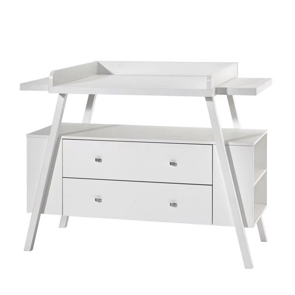 Die Wickelkommode Holly White ist mit einem abnehmbaren Wickelaufsatz ausgestattet. So bereitet Ihnen die Kommode auch nach der Wickelzeit noch Freude. Die zwei Schübe mit Selbsteinzug bieten viel Platz für Windeln und Pflegemittel. Dank der innovativen Bauweise bietet sich eine große offene Ablagefläche über den Schubkästen. Rechts und links finden Sie weiteren Stauraum in offenen Regalfächern.