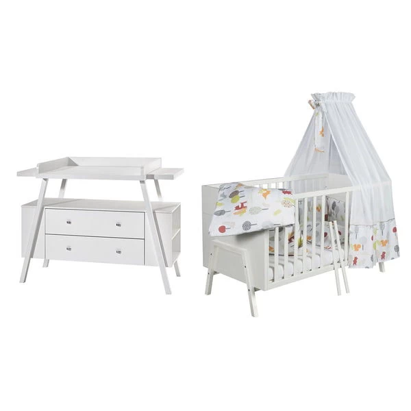 Mit den im Lieferumfang enthaltenen Umbauseiten lässt sich das Bett zu gegebener Zeit schnell und einfach in ein Juniorbett umbauen. So kann das Bett ihnen und ihrem Kind lange Freude bereiten.