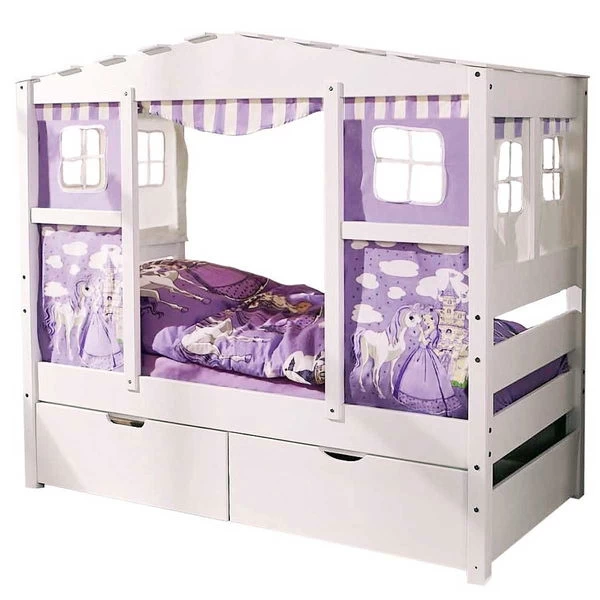 Ticaa Hausbett MINI Horse Lila Kiefer Weiß inkl. Schubkästen – Dessin: Horse Lila