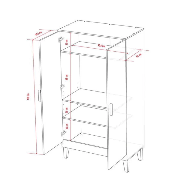 Maße: 100 × 55 × 186,5 cm (B x T x H)